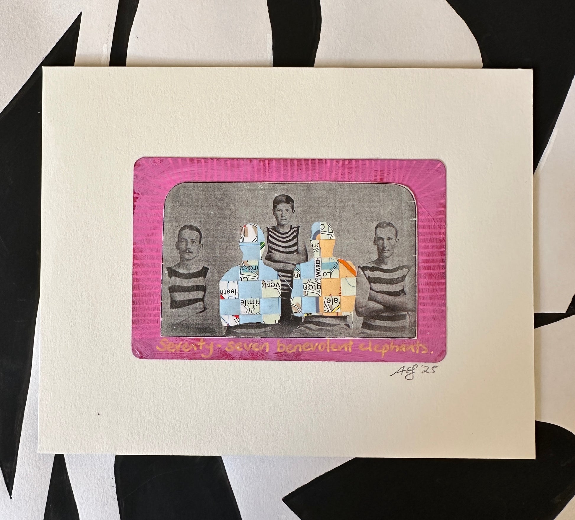 Seventy-Seven Benevolent Elephants is an original artwork using mixed media on a single playing card.